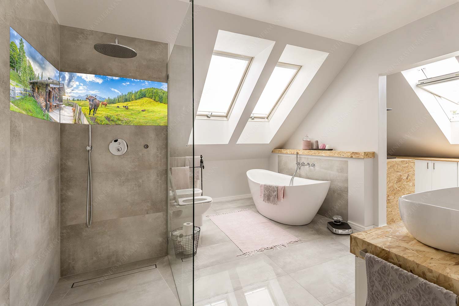 | Bild-Material | Acrylglas, Akustik, Alu-Dibond, Fototapete, Für Bad, Für Küche, Glas, Leinwand, Leuchtbild, Split, Textil |
