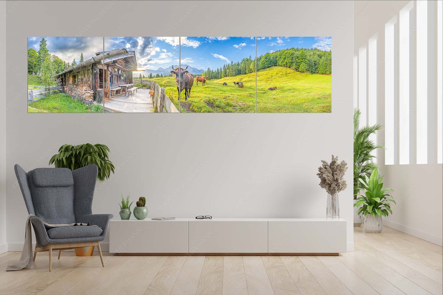 | Bild-Größen-Beispiel | 100x25cm, 120x30cm, 160x40cm, 200x50cm, 240x60cm, 280x70cm |