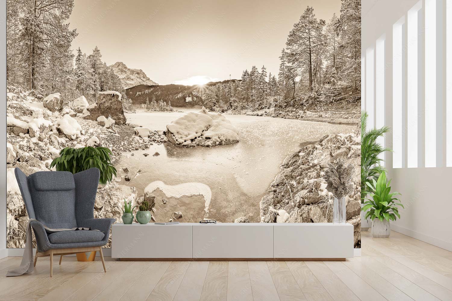 Am zufrieren 3:2 sepia — Eis auf Eibsee mit Zugspitze