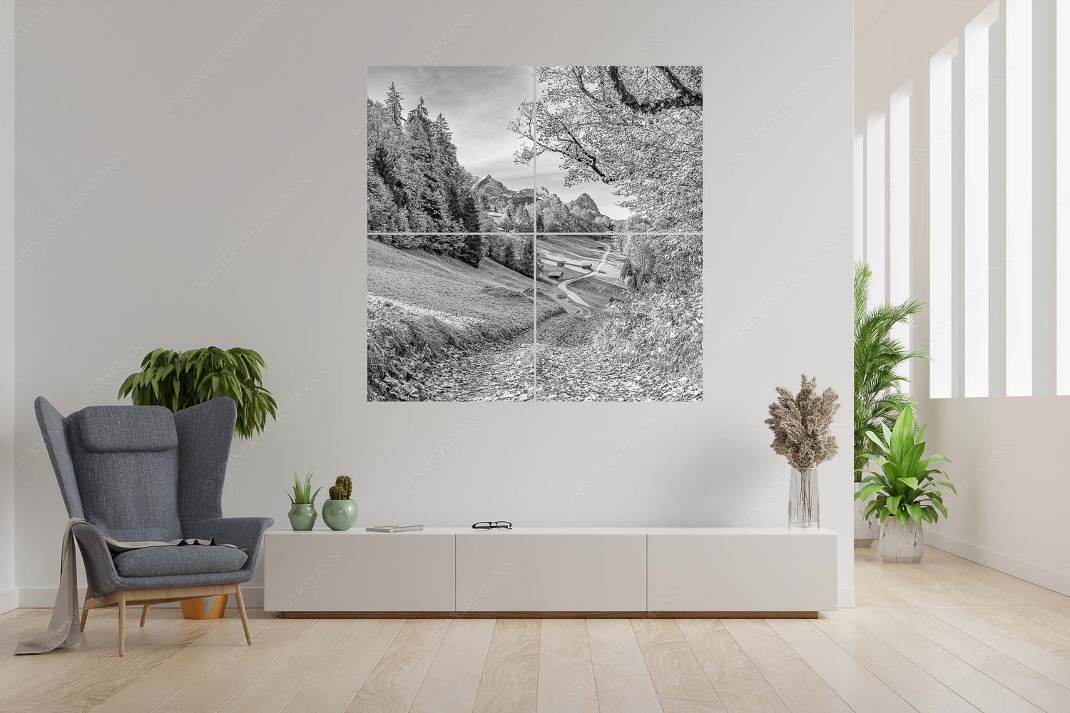 Drei schauen raus 1:1 sw — Wamberg mit Alpspitze Zugspitze und Waxenstein