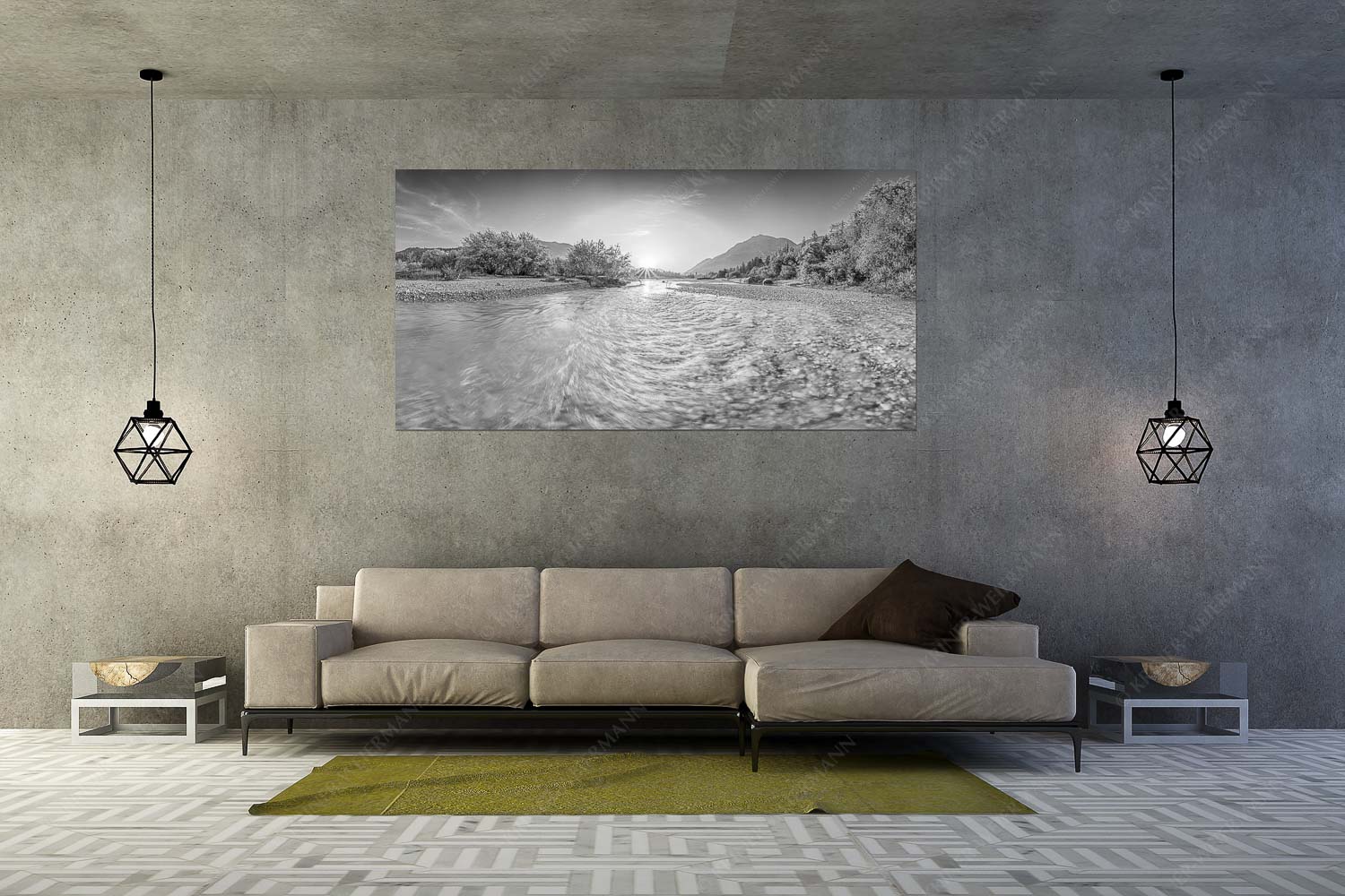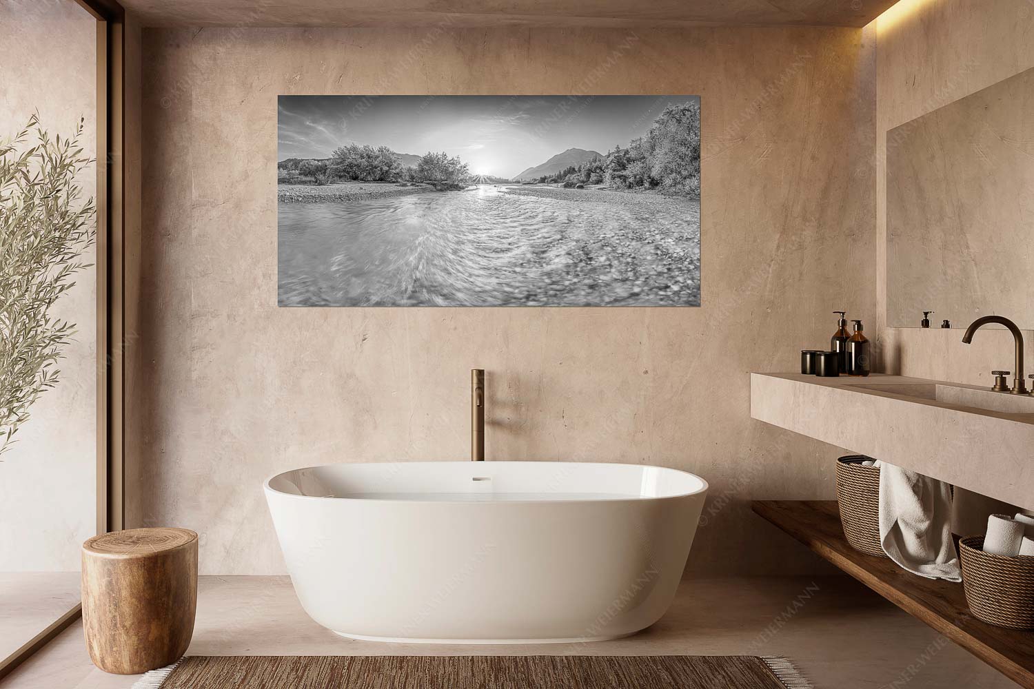 Ein Isarmorgen II 2:1 sw — Isar mit Sonnenaufgang
