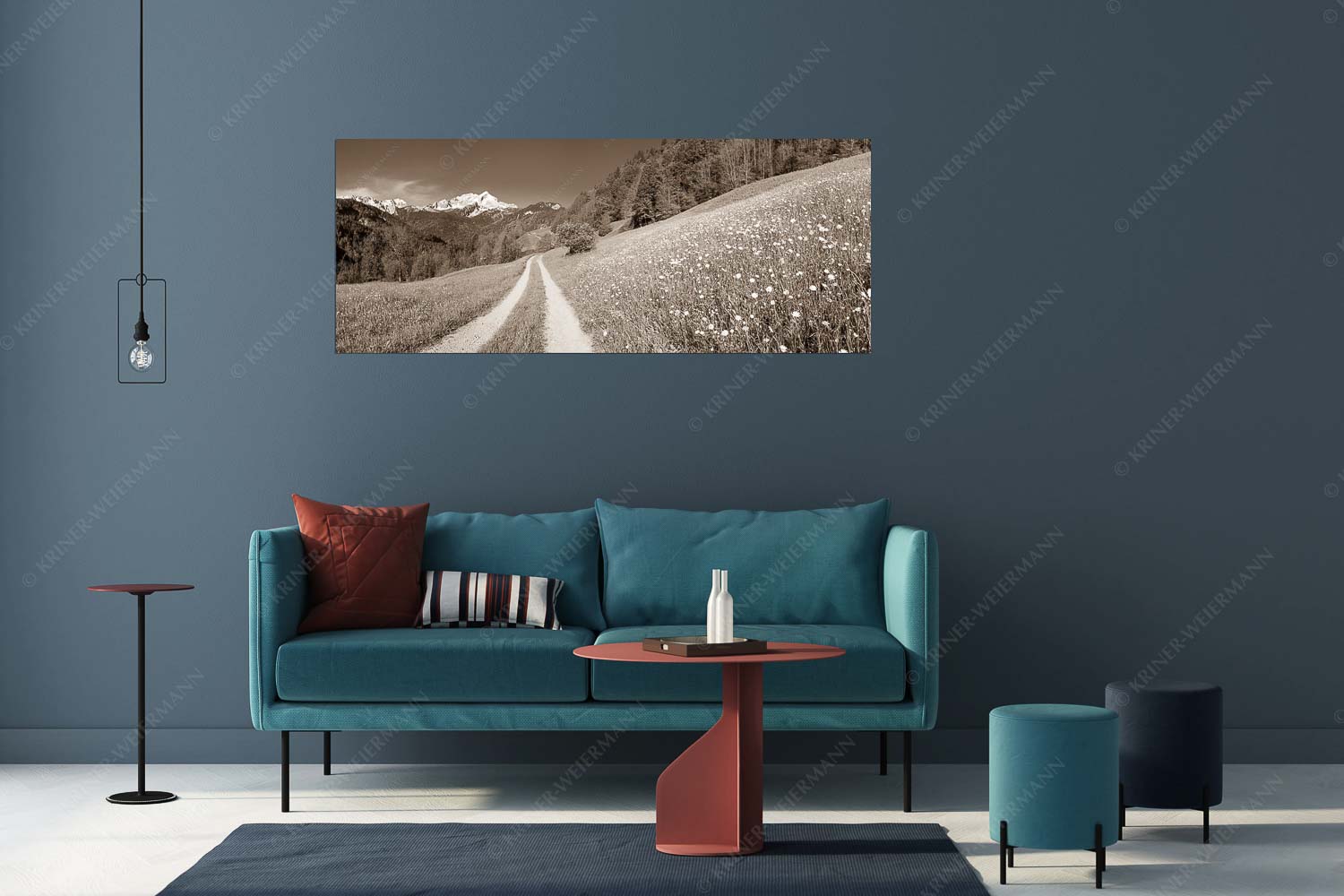 Kategorien: 2,5:1, 3-Sterne, Alpspitze, Blumen, Fotografie & Wandbilder, Sepia, Sommer, Wetterstein|SKU: FELDWEG_25ZU1_SEPIA|