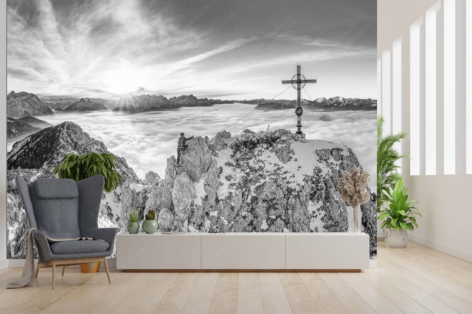 Hinter dem Wettersteingebirge geht die Sonne unter und läutet am 5. Januar die letzte der Rauhnächte ‚zwischen den Jahren ein. Die Inversionswetterlage, auch Umkehrwetterlage genannt, drückt die Wolken hinunter ins Obere Isartal, wo es nun kälter ist als oben am Signalkopf auf 1.898 Metern Höhe. Freier Blick ins Gebirge – und ins neue Jahr!