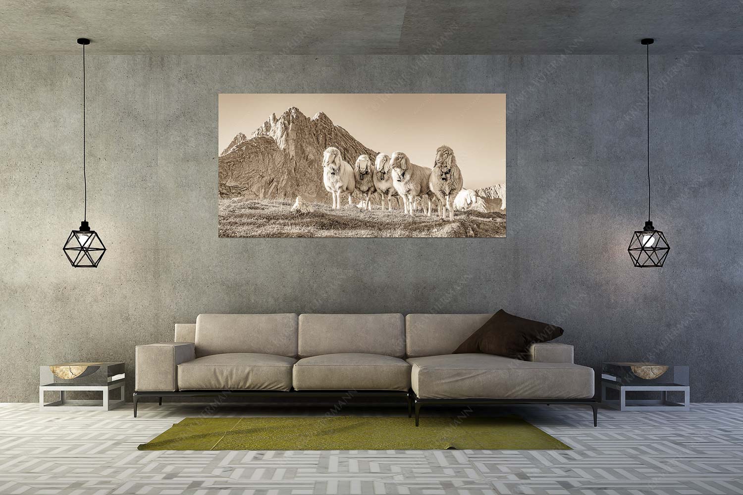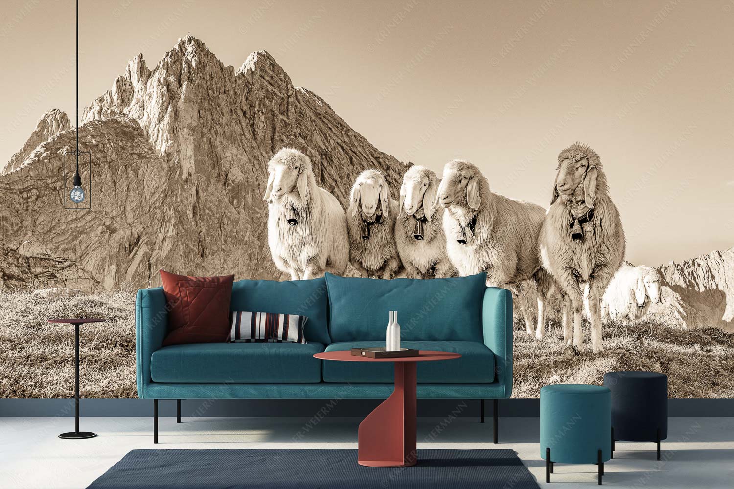 Freundliche Weggefährten 2:1 sepia — Schafe mit Dreitorspitze im Wetterstein