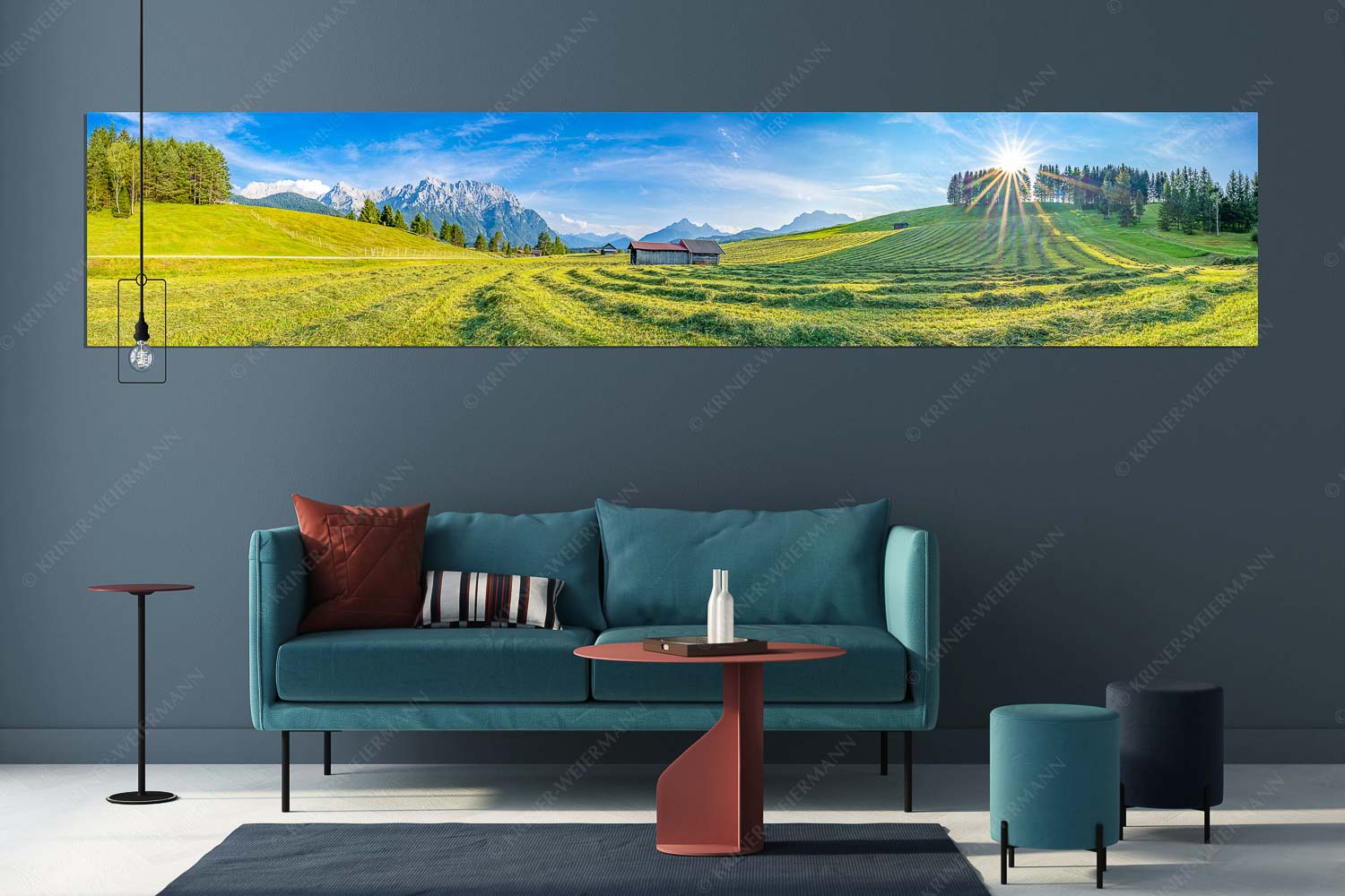 Gemähte Wiese am Tonihof mit Blick zum Karwendel und Wetterstein