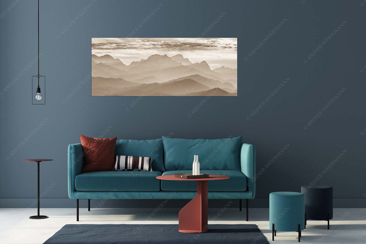 Heimatsilhouetten 2,5:1 sepia — Abendlicht am Zugspitzmassiv