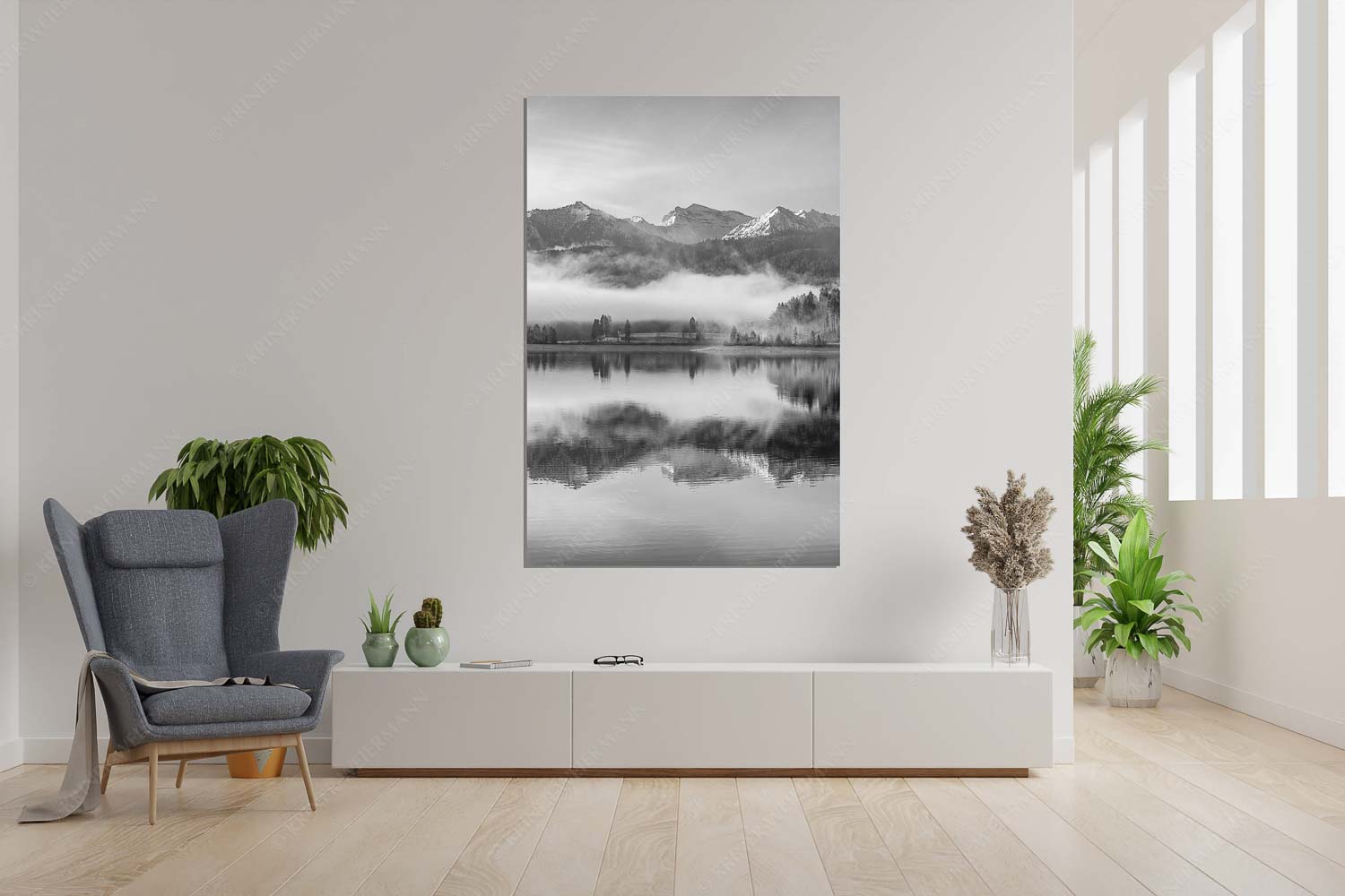 Heimatsymphonie 2:3 sw — Walchensee mit Soierngebirge