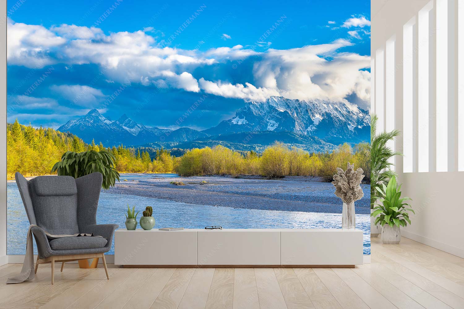 Blick über die Isar bei Wallgau zum Wettersteingebirge und den Arnspitzen