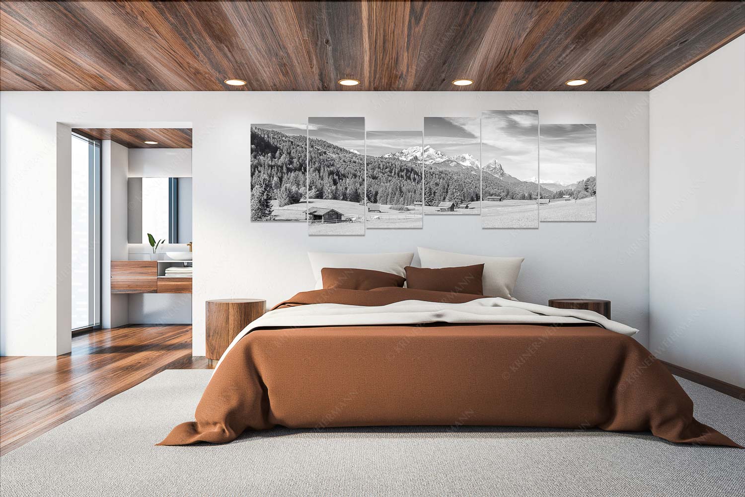Idyllischer Zugspitzblick 2,5:1 sw — Heustadel Alpspitze Zugspitze Waxenstein