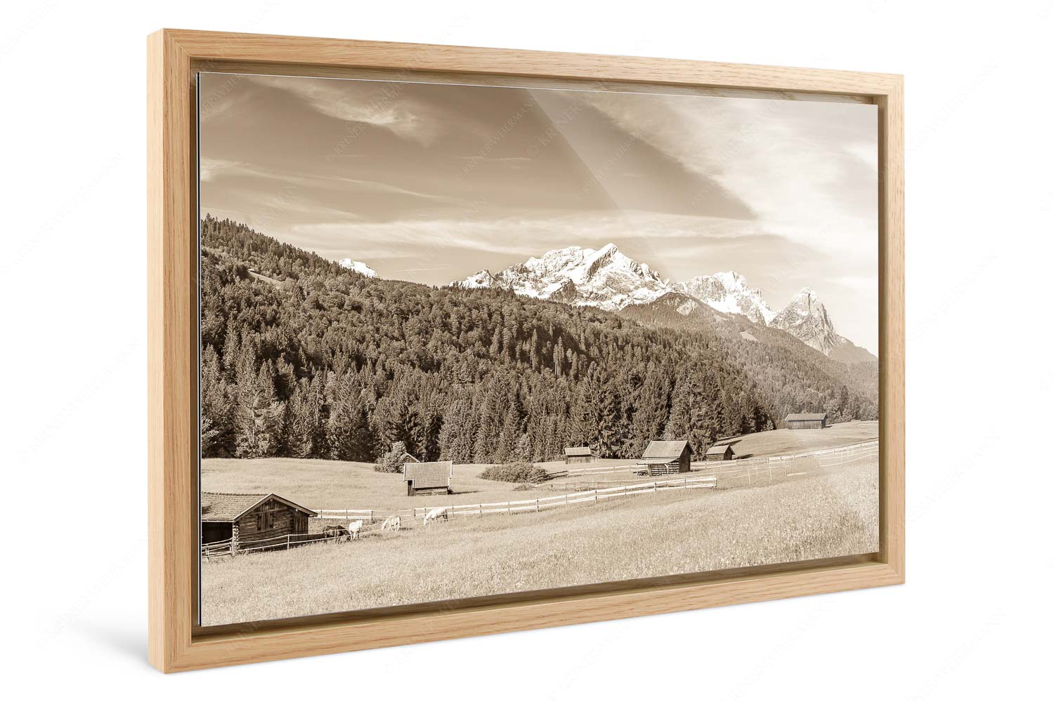 Idyllischer Zugspitzblick 3:2 sepia — Heustadel Alpspitze Zugspitze Waxenstein