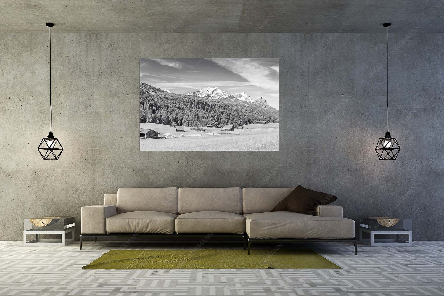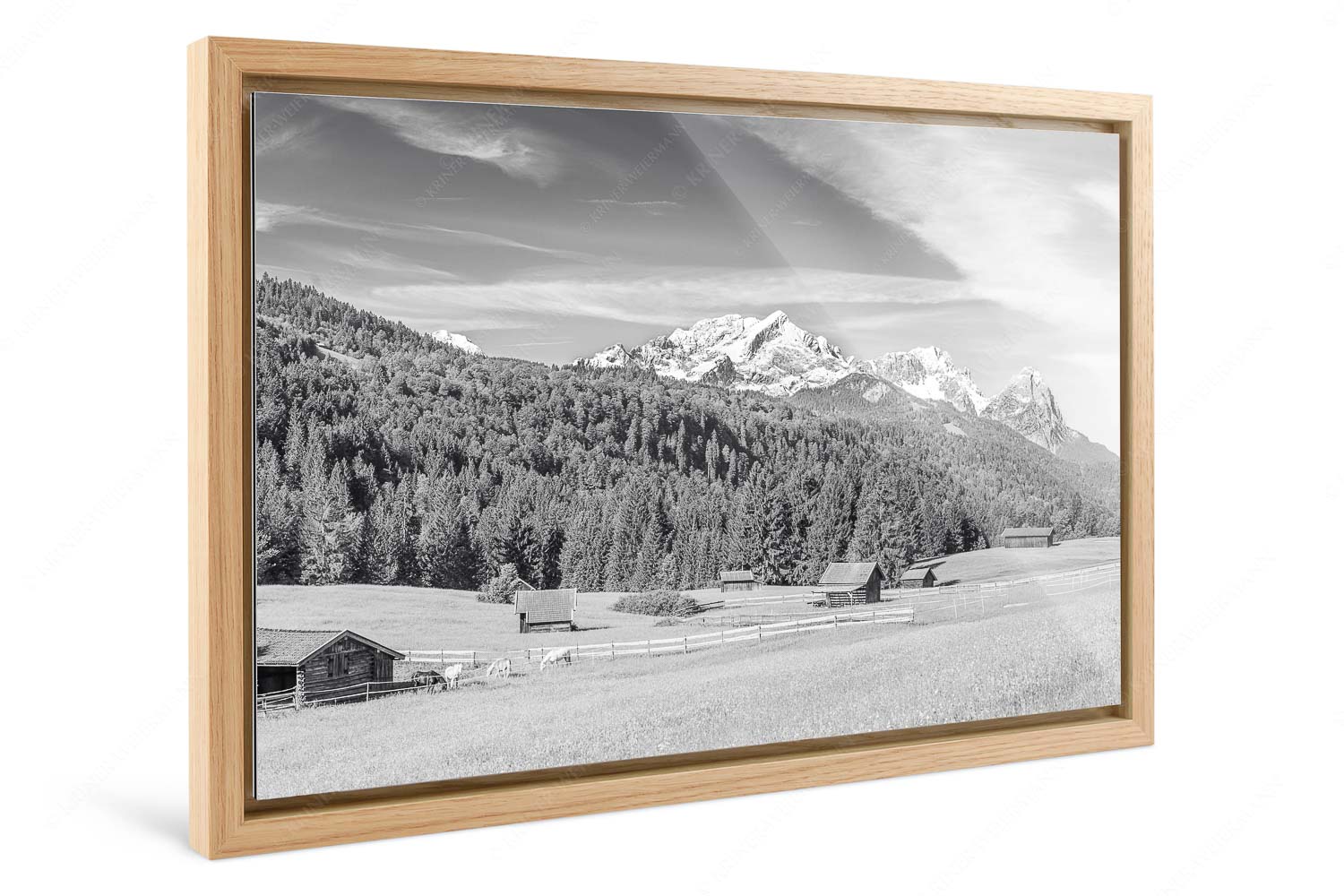 Idyllischer Zugspitzblick 3:2 sw — Heustadel Alpspitze Zugspitze Waxenstein