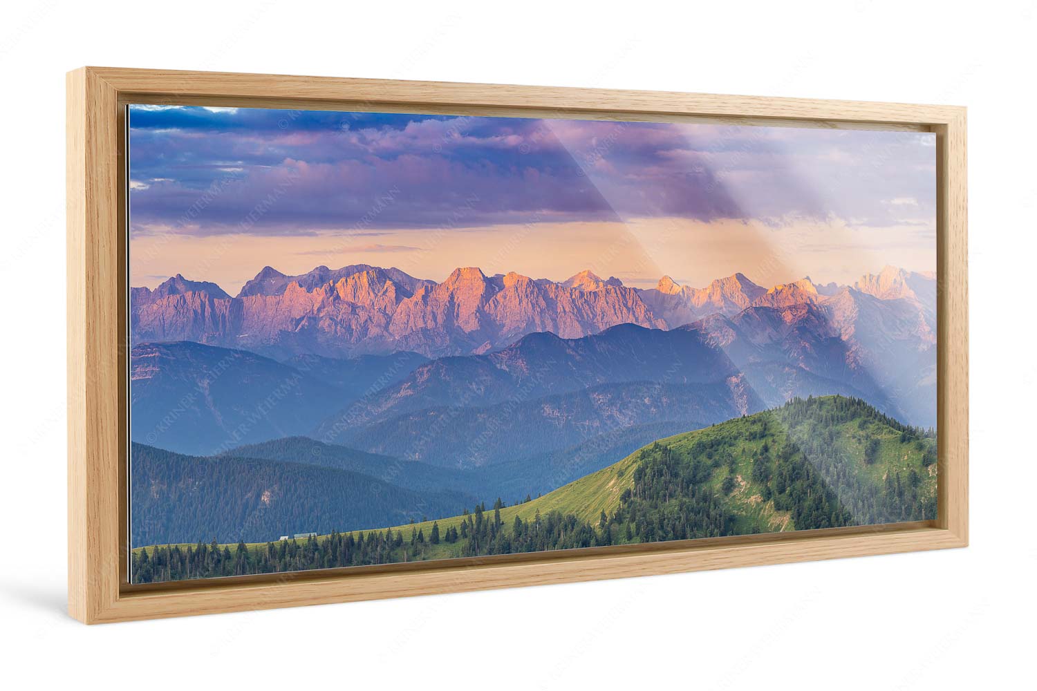 Panoramablick auf die Nordwände des Karwendels im ersten Morgenlicht