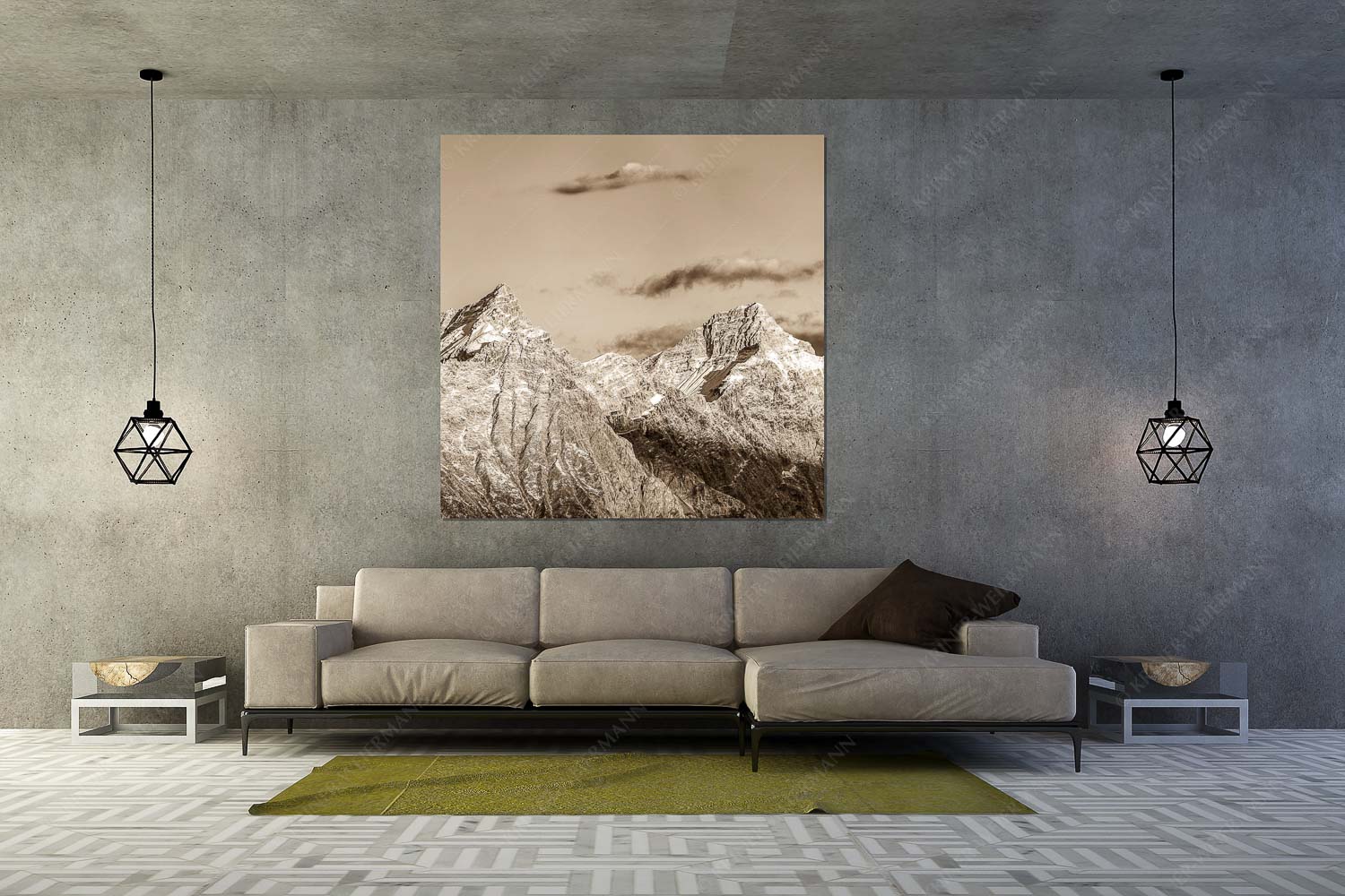 Karwendelgrößen 1:1 sepia — Kaltwasserkarspitze und Birkkarspitze