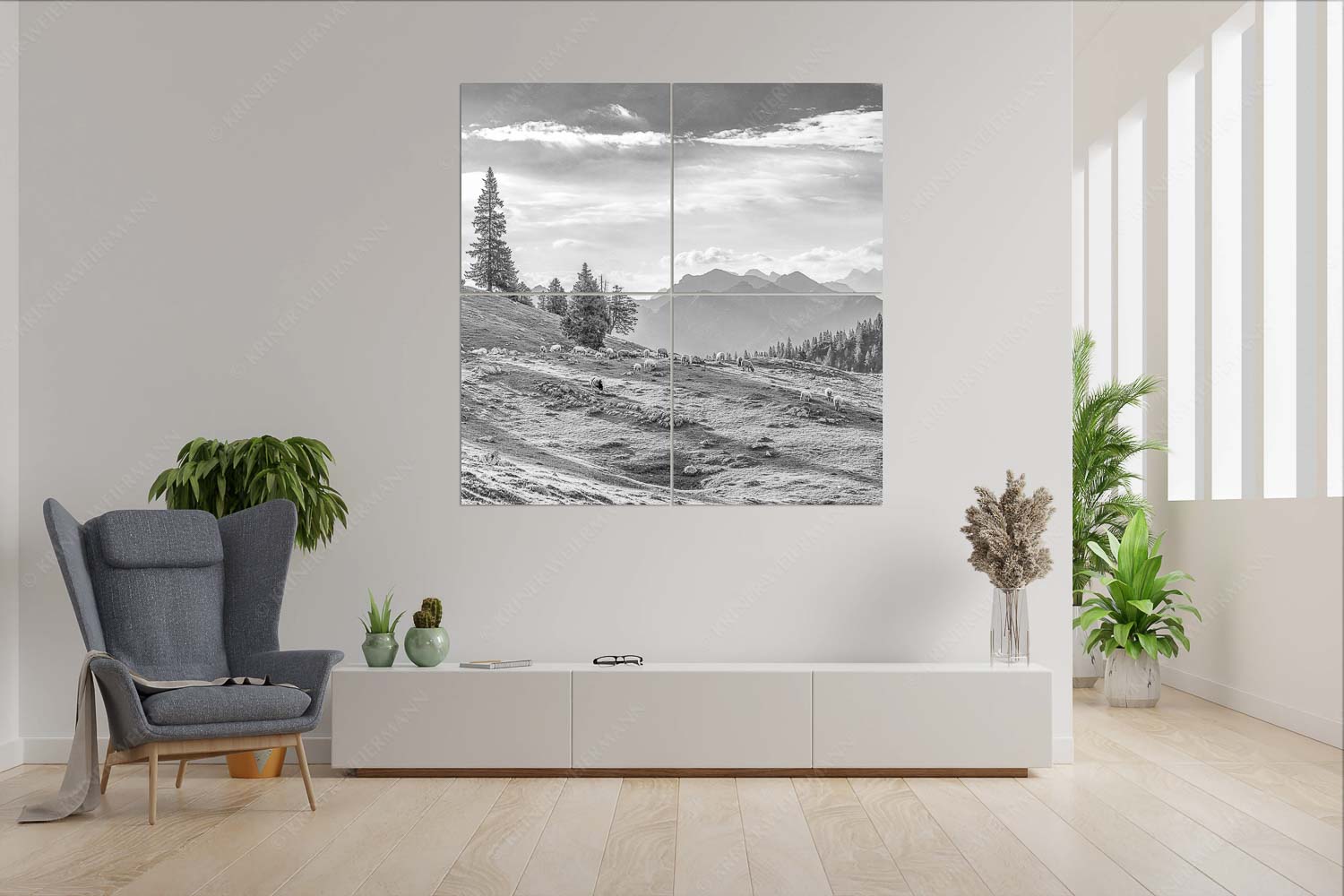 Kategorien: 1:1, 3-Sterne, Almen, Estergebirge, Fotografie & Wandbilder, Soierngebirge, Sommer, SW, Tiere, Tradition|SKU: KUHALMSCHAFLAN_1ZU1_SW|