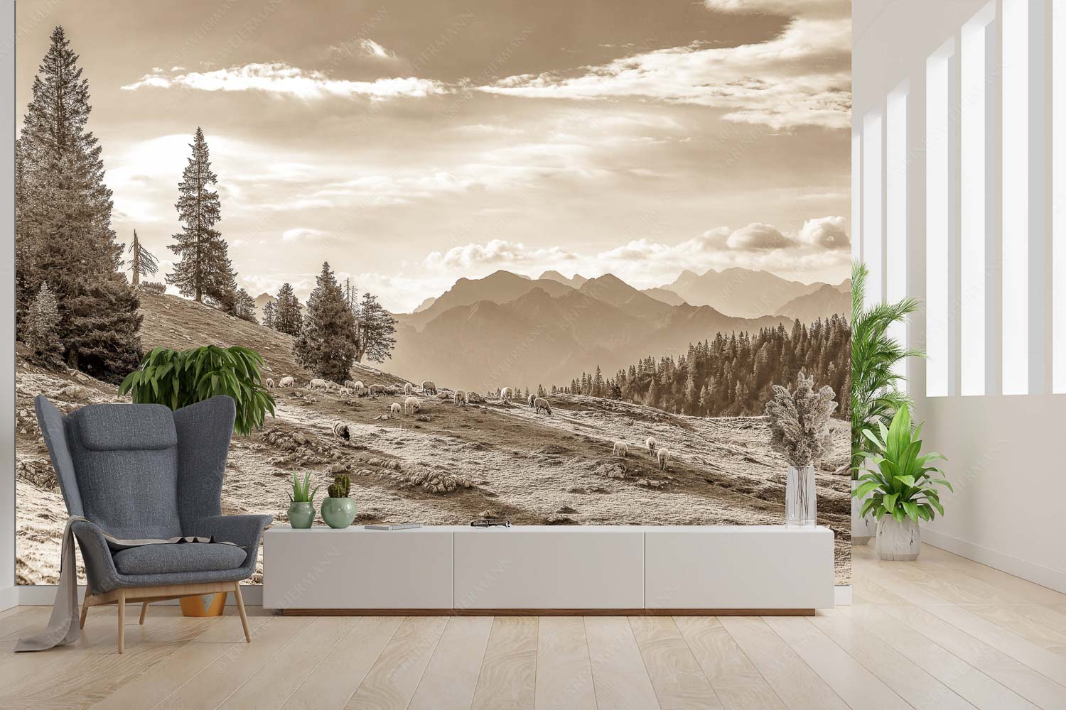 Kuhalmschaflan 3:2 sepia — Schafe auf der Kuhalm im Estergebirge