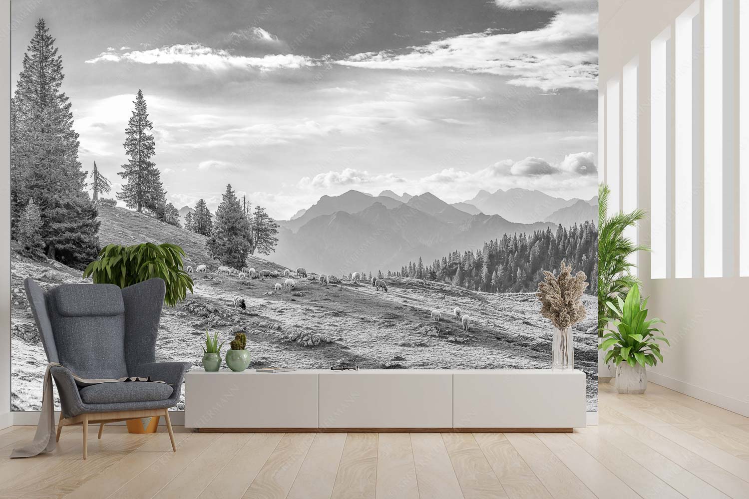 Kuhalmschaflan 3:2 sw — Schafe auf der Kuhalm im Estergebirge