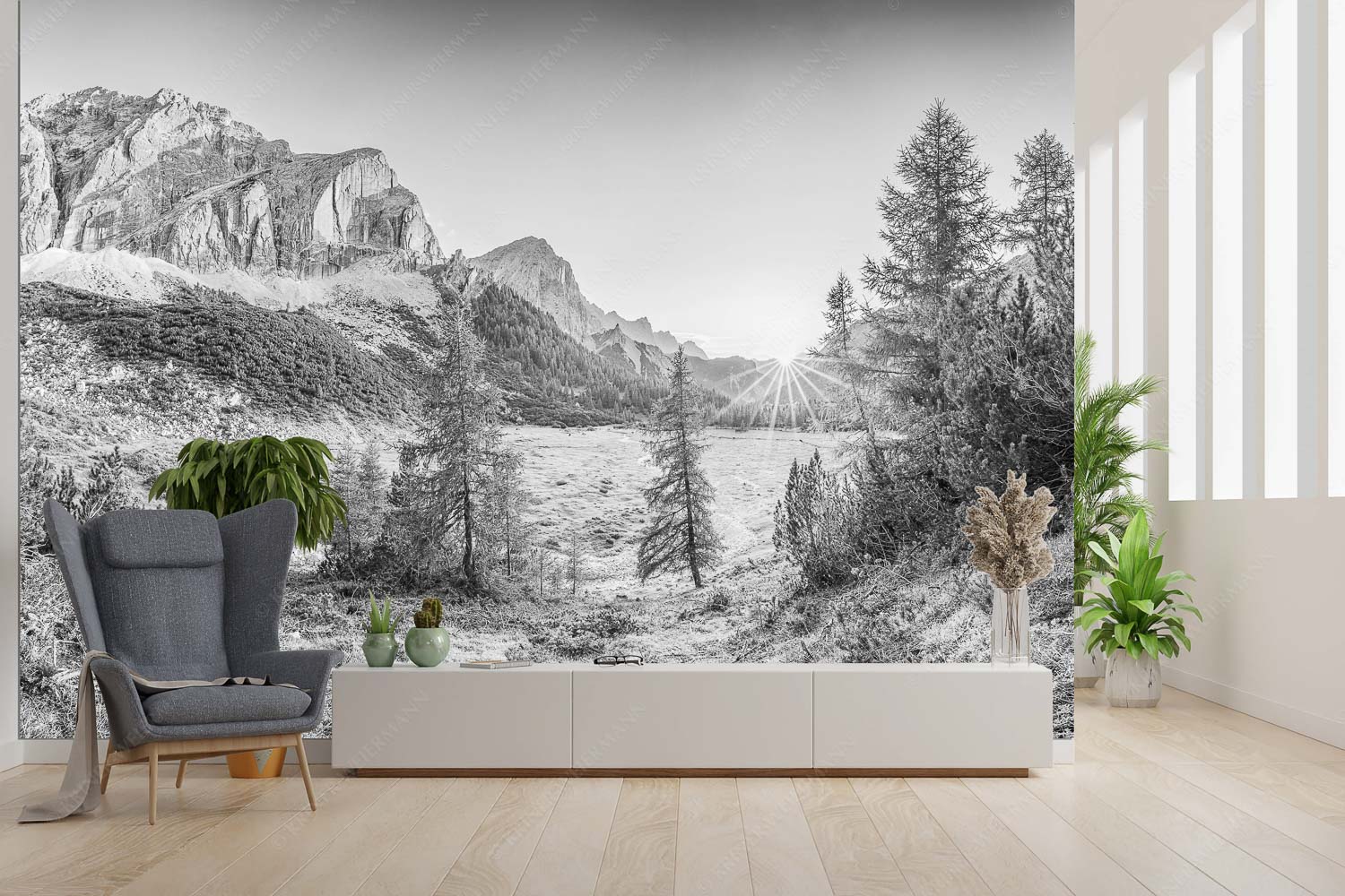 Letztes Licht am Anger 3:2 sw — Halleranger mit Speckkarspitze im Karwendel
