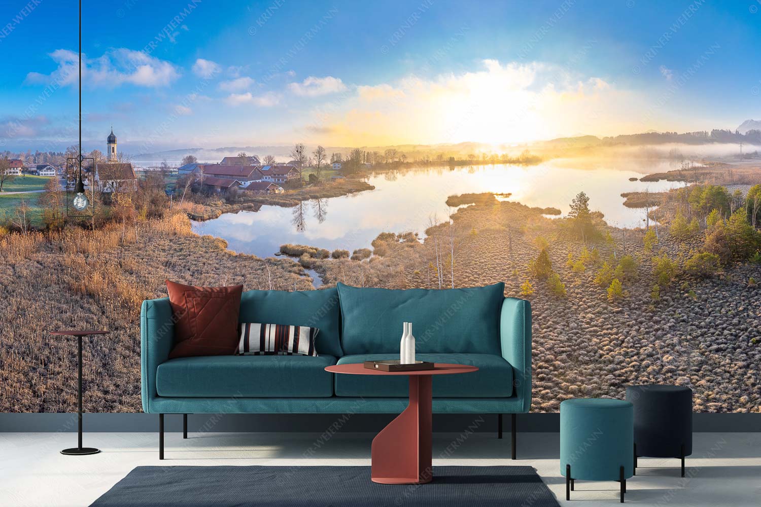 Morgens in Froschhausen 2:1 — Froschhausener See mit Kirche