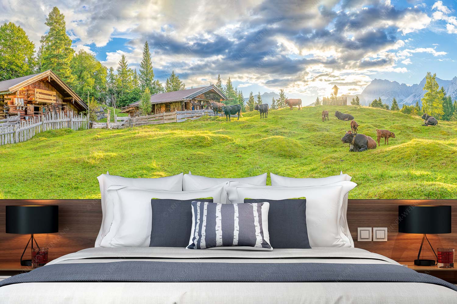 Friedliche Almwiese bei Mittenwald mit Karwendel im Morgenlicht