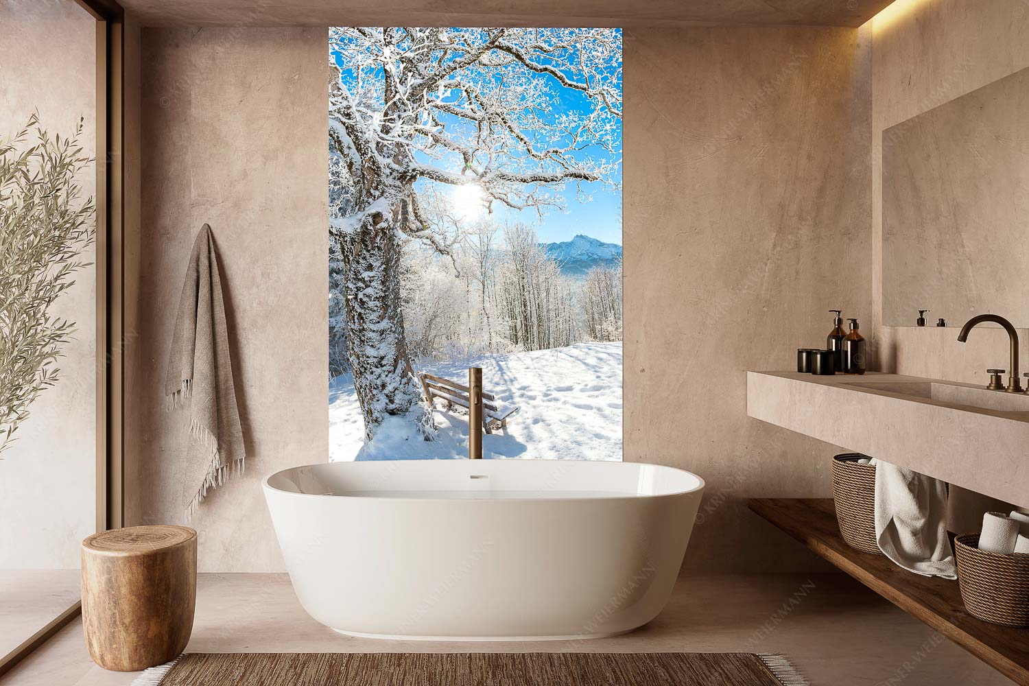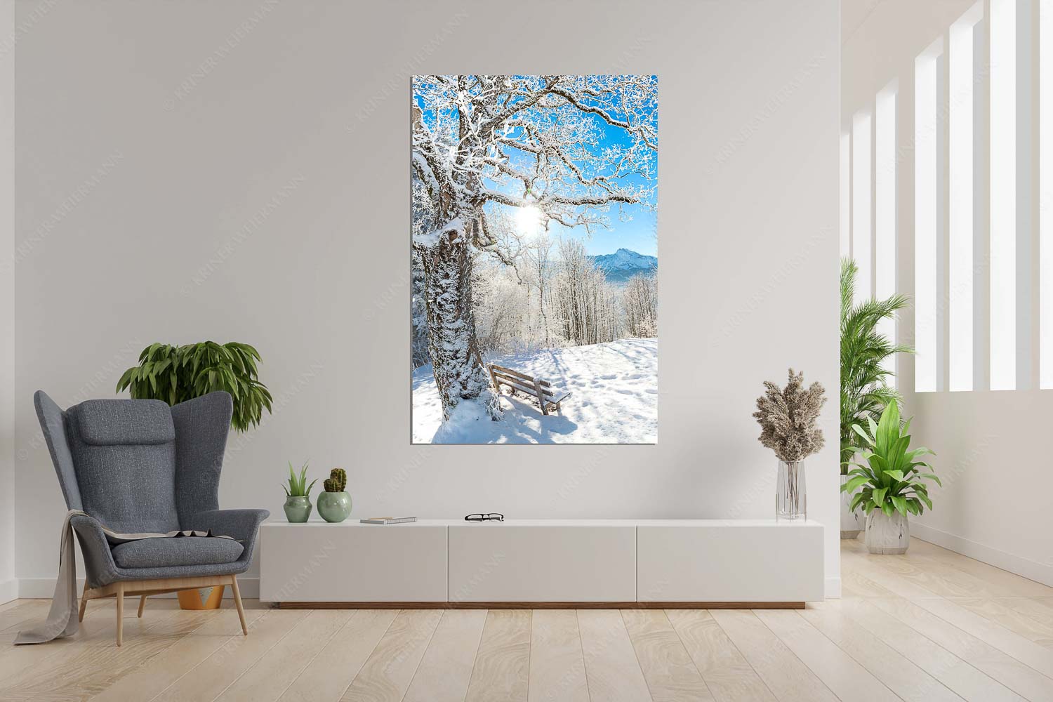 Rast 2:3 — Rastbank mit Baum im Winter am Eckbauer