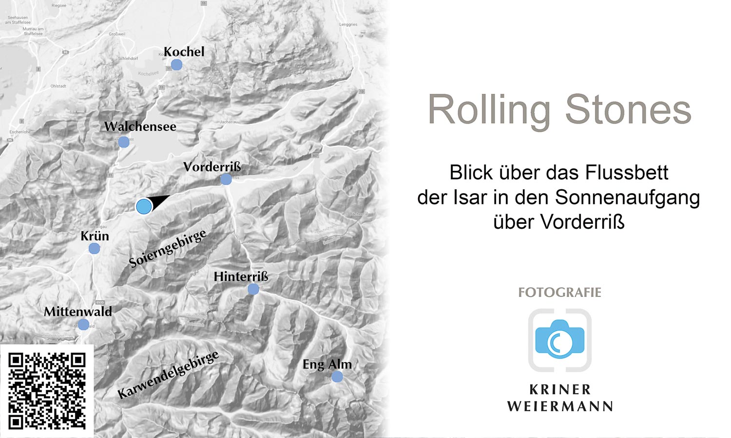 Ein magischer Moment an der Isar, eingefangen im frühen Morgenlicht des Augusts. Das breite Flussbett ist übersät mit Steinen, die teilweise aus dem klaren Wasser ragen und in der aufgehenden Sonne glitzern. Die ersten Strahlen der Sonne brechen über Vorderriß hervor und tauchen die Landschaft in ein warmes, goldenes Licht. Rechts erhebt sich das imposante Soierngebirge, während der Himmel in einem tiefen Blau leuchtet. Diese friedliche Szene vereint die rohe Schönheit der Natur mit dem stillen Beginn eines neuen Tages. Ein Anblick, der die Seele berührt und die Schönheit der bayerischen Landschaft eindrucksvoll zur Geltung bringt.
