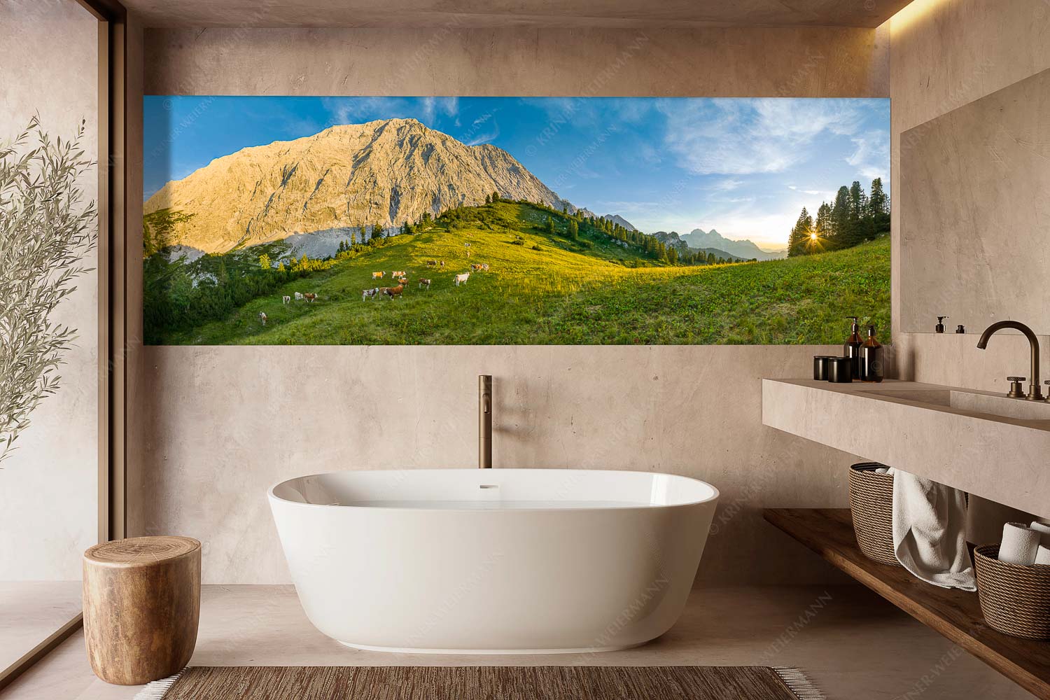 | Bild-Material | Acrylglas, Akustik, Alu-Dibond, Fototapete, Für Bad, Für Küche, Glas, Leinwand, Leuchtbild, Split, Textil |
