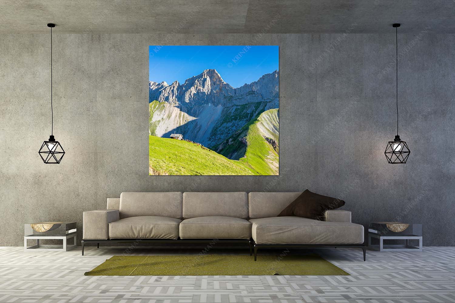 Scharnitzjoch 1:1 — Schafe mit Erinnerungshütte im Wetterstein