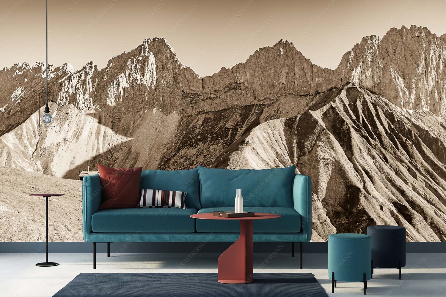 Scharnitzjoch 2:1 sepia — Schafe mit Erinnerungshütte im Wetterstein