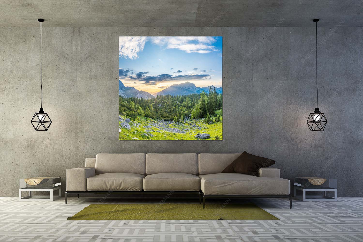 | Bild-Material | Acrylglas, Akustik, Alu-Dibond, Fototapete, Für Bad, Für Küche, Glas, Leinwand, Leuchtbild, Split, Textil |