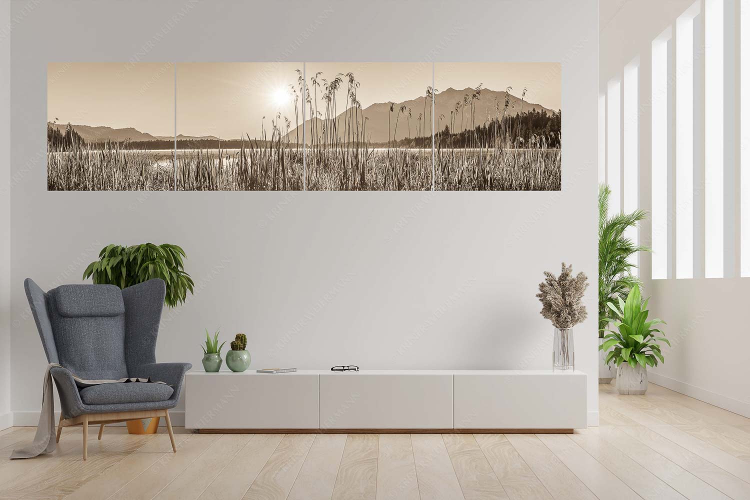 Schilfufer 4:1 sepia — Barmseeufer mit Soierngebirge