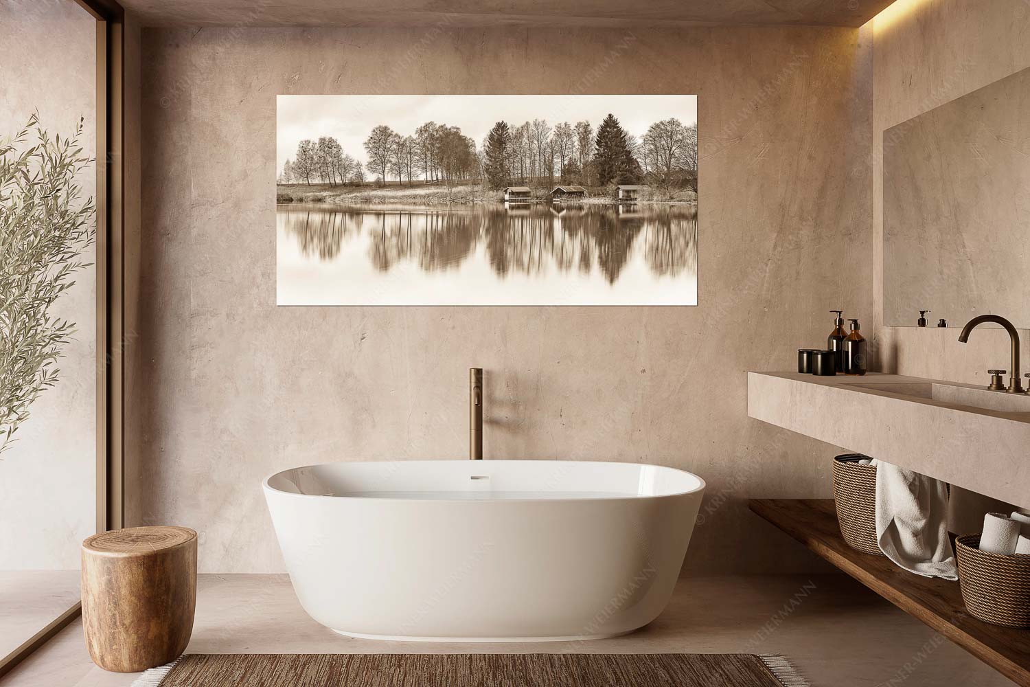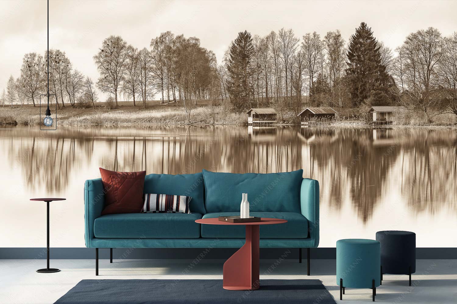 Spieglein-Spieglein 2:1 sepia — Bootshütten am Staffelsee