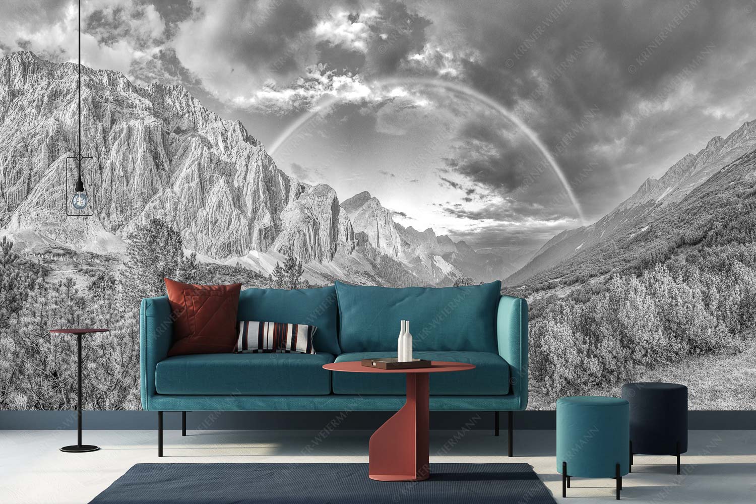 Verzaubert 2:1 sw — Regenbogen Halleranger im Karwendelgebirge