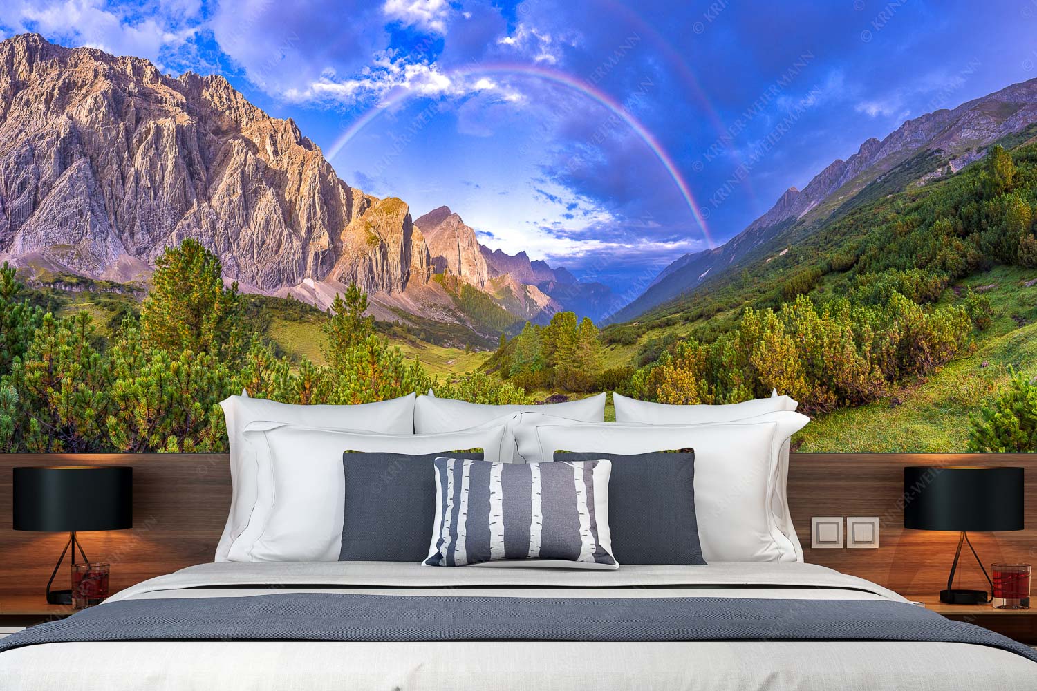 Regenbogen über dem Lafatscher und dem Halleranger im Karwendelgebirge