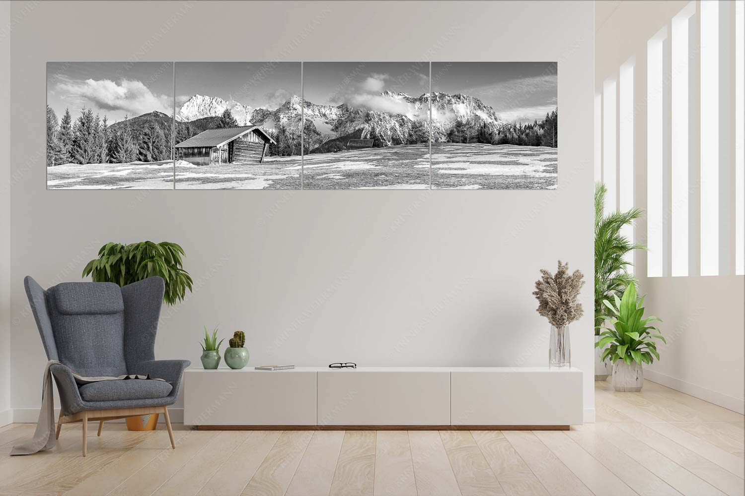 | Bild-Größen-Beispiel | 100x25cm, 120x30cm, 160x40cm, 200x50cm, 240x60cm, 280x70cm |