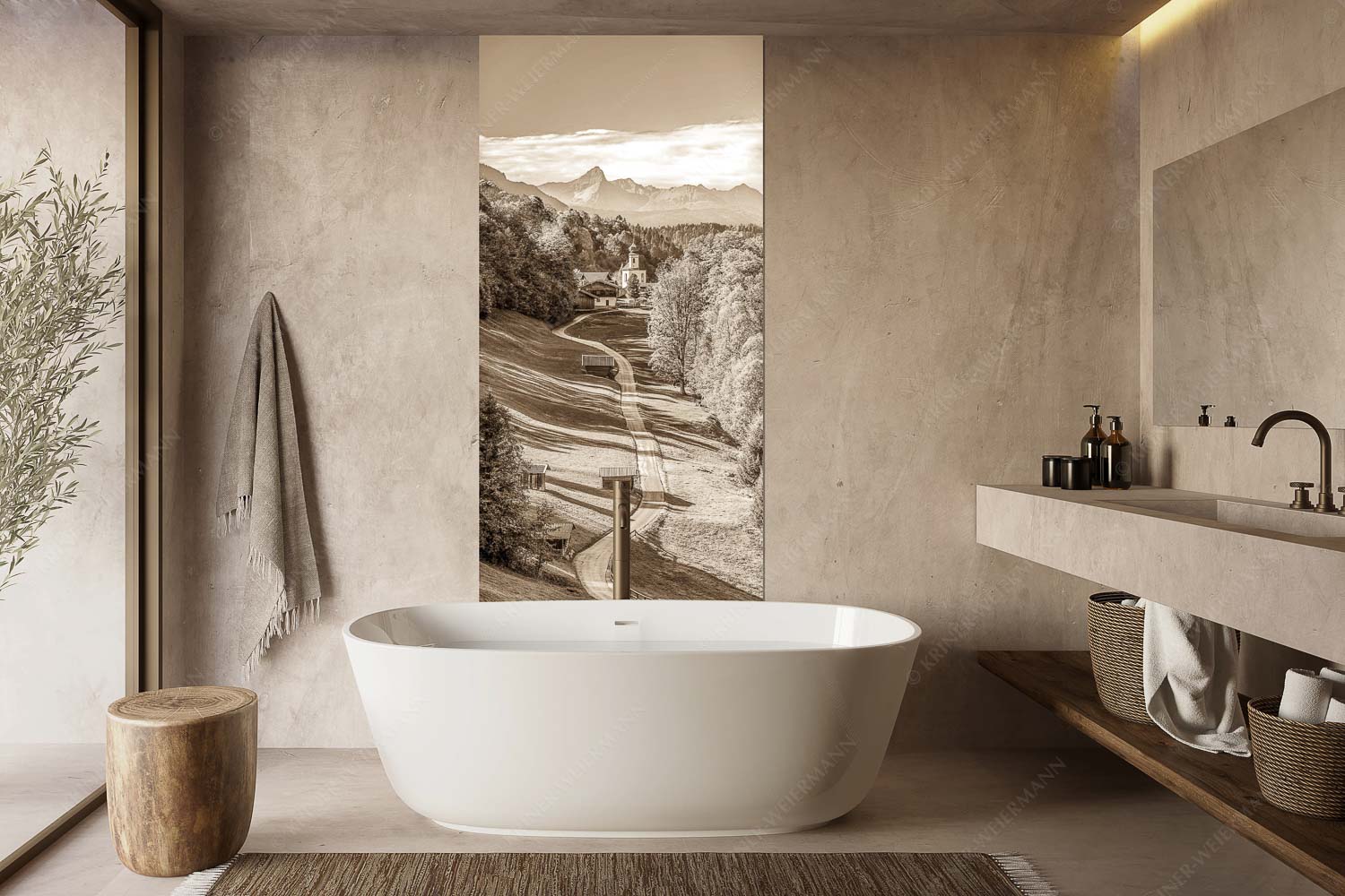 Weg zur Andacht 1:2 sepia — Wamberg mit Kirche
