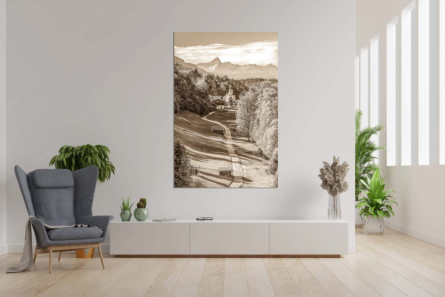 Weg zur Andacht 2:3 sepia — Wamberg mit Kirche