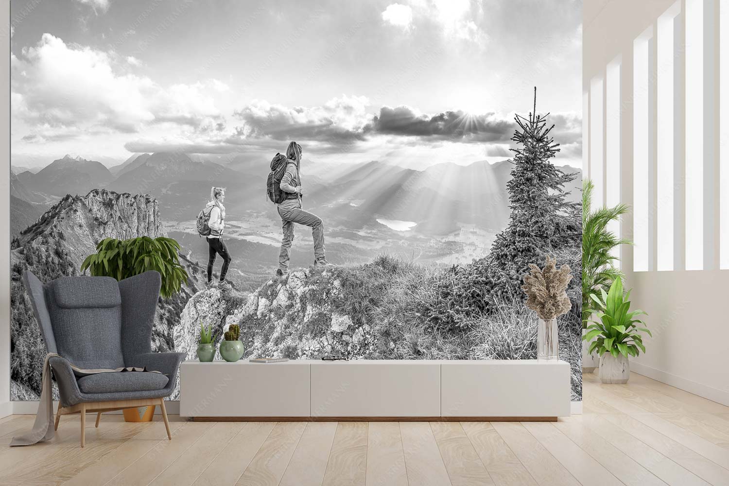 Weitsichtig 3:2 sw — Bergwanderer am Seinskopf im Soiern