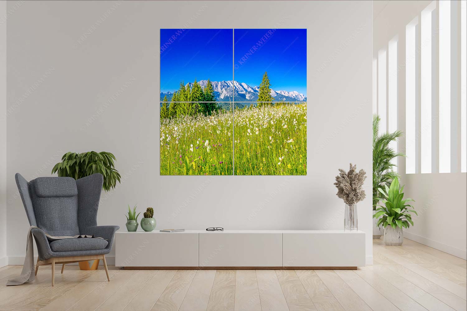 Wollgras Wiesn 1:1 — Blumenwiese mit Wetterstein