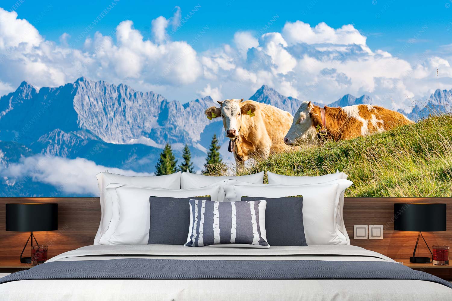 Jungvieh auf der Wallgaueralm mit Karwendel